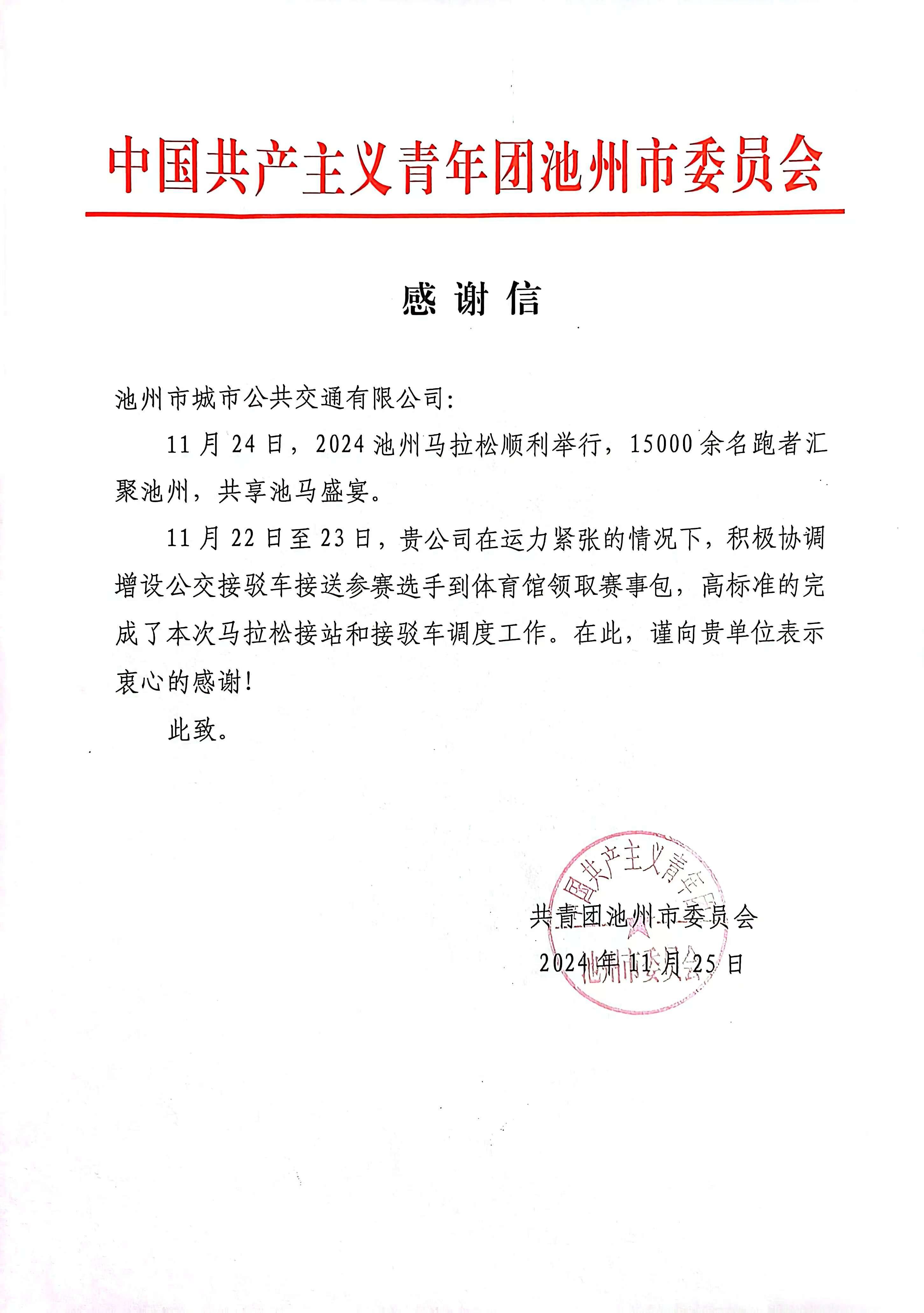 11月22日至24日,池州市城市公交累計(jì)投入馬拉松服務(wù)運(yùn)力94臺(tái),累計(jì)發(fā)出班次331個(gè),累計(jì)服務(wù)乘客約1.1萬(wàn)人次。這些數(shù)據(jù)背后,是池州市城市公交對(duì)池馬“馬”力全開(kāi)的支持。此次馬拉松的志愿服務(wù)工作展示了城市公交優(yōu)良的工作作風(fēng),受到了共青團(tuán)池州市委、池州馬拉松組委會(huì)的表?yè)P(yáng)和廣大參賽選手的充分認(rèn)可。未來(lái),我們將繼續(xù)秉承志愿精神,不斷提升自己的專業(yè)素養(yǎng)和服務(wù)能力!