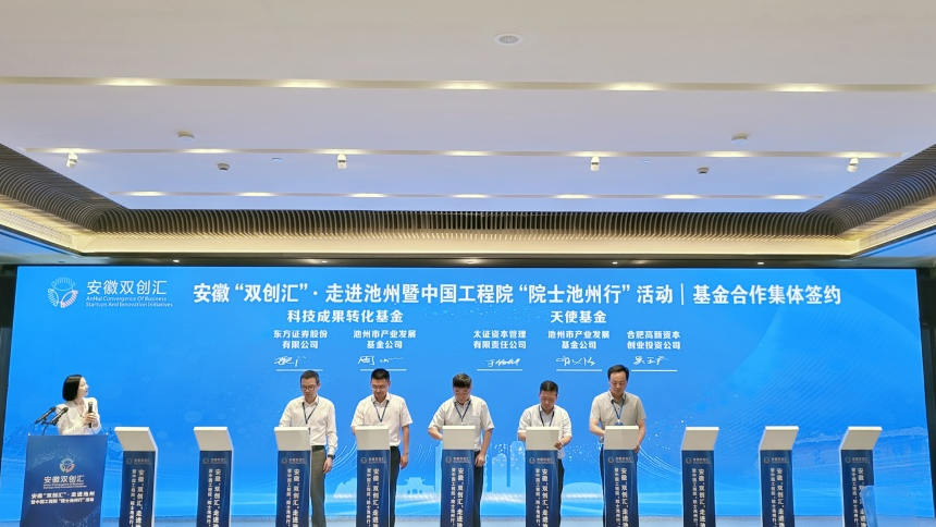 開(kāi)幕式上首個(gè)重大項(xiàng)目——池州市產(chǎn)業(yè)基金公司與東方證券、太證資本和合高資本進(jìn)行基金合作簽約。本次簽約的池州科技成果轉(zhuǎn)化基金是近年來(lái)池州市首支與省母基金合作的基金項(xiàng)目,同時(shí)池州太證合高股權(quán)投資合伙企業(yè)(有限合伙)(暫定)是池州市首支天使基金。