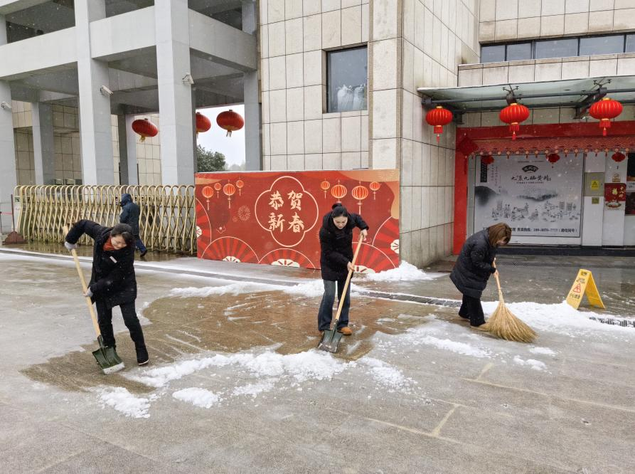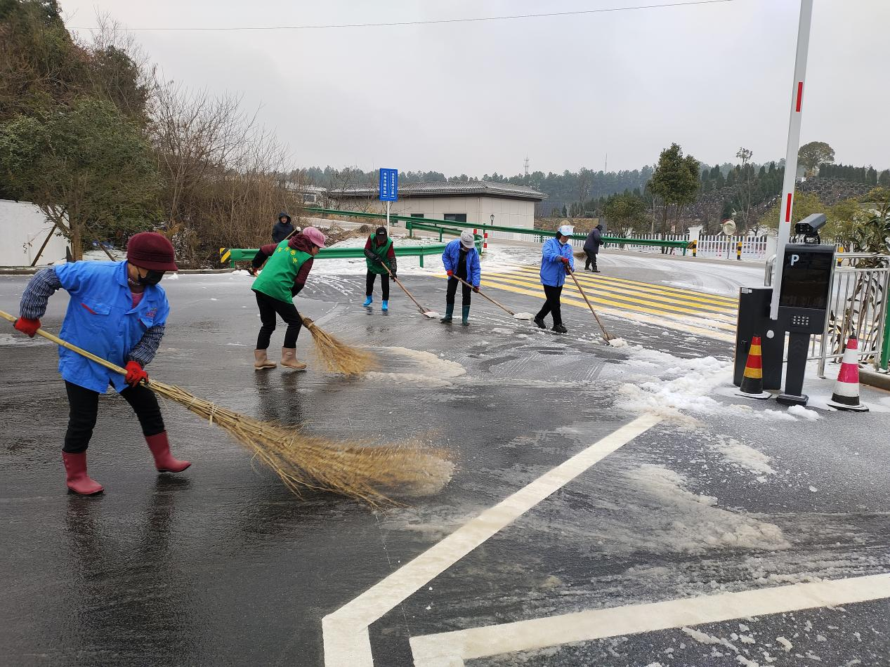 公司組織全體員工迅速投入掃雪除冰行動(dòng),安排專人在001縣道小沖口下坡段多次拋灑融雪劑,重點(diǎn)對坡道路面加強(qiáng)清雪除冰工作。全體干部職工,按照下雪應(yīng)急預(yù)案提前劃分好區(qū)域,對各區(qū)域道路的積雪進(jìn)行清掃。經(jīng)過奮力清雪除冰,通往園區(qū)和館內(nèi)道路積雪積冰情況得到有效緩解。